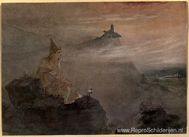 Wij bieden u een ambachtelijke reproductie op doek van het beroemde schilderij 'Asoka, die door het witte stucwerk van zijn roem het universum v' van Abanindranath Tagore, afkomstig uit het Reproductiemuseum.