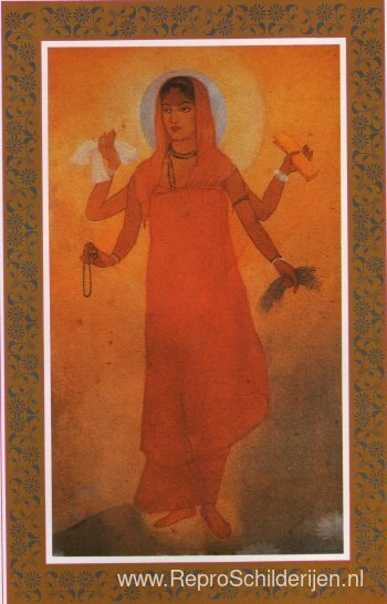 Wij bieden u een ambachtelijke reproductie op doek van het beroemde schilderij 'Bharat Mata (Moeder India)' van Abanindranath Tagore, afkomstig uit het Reproductiemuseum.
