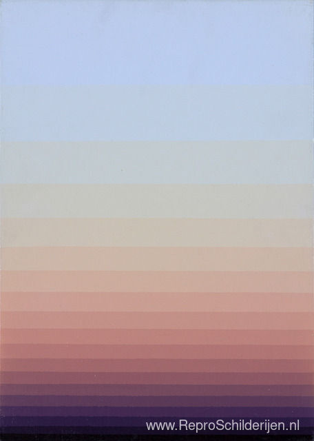 Wij bieden u een ambachtelijke reproductie op doek van het beroemde schilderij 'Nieuw Blauw 2' van Norman Zammitt, afkomstig uit het Reproductiemuseum.