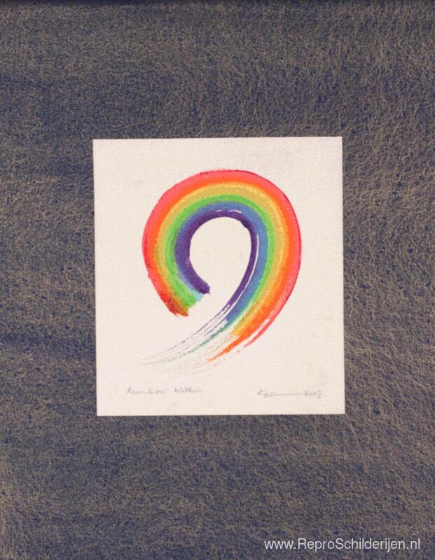 Wij bieden u een ambachtelijke reproductie op doek van het beroemde schilderij 'Regenboog binnen' van Kazuaki Tanahashi, afkomstig uit het Reproductiemuseum.