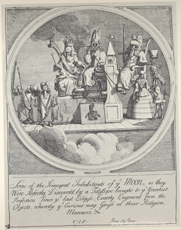 Wij bieden u een ambachtelijke reproductie op doek van het beroemde schilderij 'Royalty, episcopaat en recht' van William Hogarth, afkomstig uit het Reproductiemuseum.