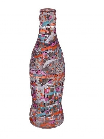 Wij bieden u een ambachtelijke reproductie op doek van het beroemde schilderij 'Coca Cola-fles' van Howard Finster, afkomstig uit het Reproductiemuseum.