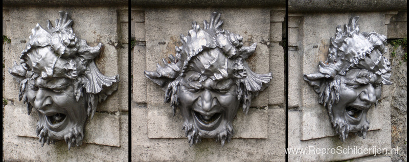 Wij bieden u een ambachtelijke reproductie op doek van het beroemde schilderij 'Drie weergaven van een masker' van Auguste Rodin, afkomstig uit het Reproductiemuseum.
