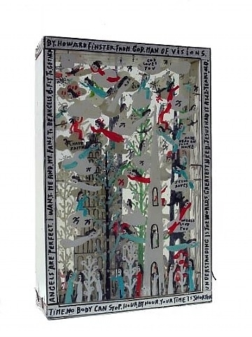 Wij bieden u een ambachtelijke reproductie op doek van het beroemde schilderij 'God houdt van je' van Howard Finster, afkomstig uit het Reproductiemuseum.