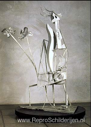 Wij bieden u een ambachtelijke reproductie op doek van het beroemde schilderij 'Vrouw in de tuin' van Pablo Picasso, afkomstig uit het Reproductiemuseum.