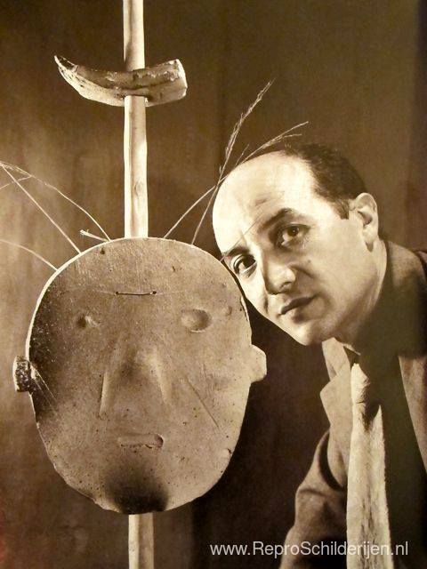 Wij bieden u een ambachtelijke reproductie op doek van het beroemde schilderij 'Gezichtsschotel (ik)' van Isamu Noguchi, afkomstig uit het Reproductiemuseum.