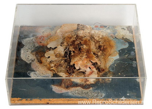 Wij bieden u een ambachtelijke reproductie op doek van het beroemde schilderij 'Klein eiland' van Dieter Roth, afkomstig uit het Reproductiemuseum.