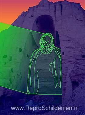 Wij bieden u een ambachtelijke reproductie op doek van het beroemde schilderij 'NY Boeddha' van Hiro Yamagata, afkomstig uit het Reproductiemuseum.