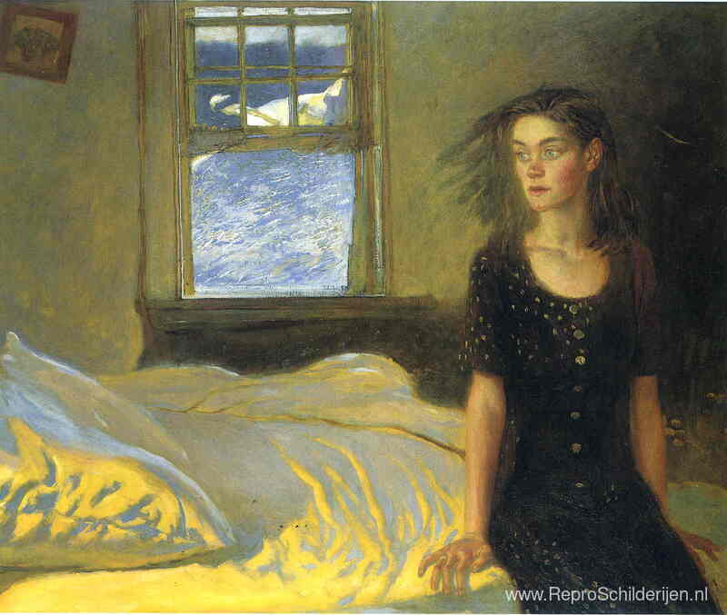 Wij bieden u een ambachtelijke reproductie op doek van het beroemde schilderij 'Als je ooit op een eiland hebt geslapen' van Jamie Wyeth, afkomstig uit het Reproductiemuseum.