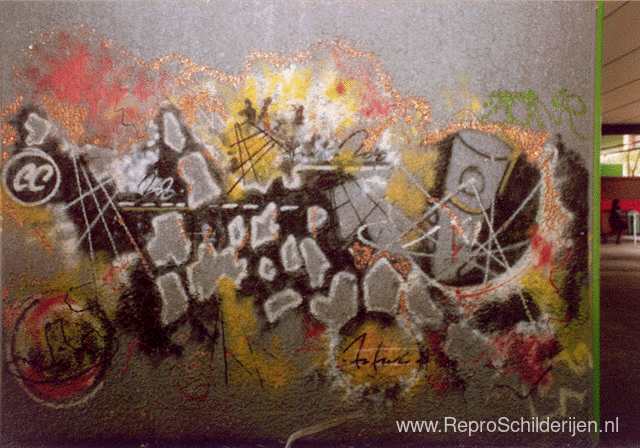 Wij bieden u een ambachtelijke reproductie op doek van het beroemde schilderij 'Muur' van Futura 2000, afkomstig uit het Reproductiemuseum.