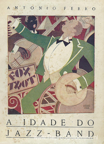Wij bieden u een ambachtelijke reproductie op doek van het beroemde schilderij 'Antonio Ferro, Het tijdperk van de jazzband (cover)' van Bernardo Marques, afkomstig uit het Reproductiemuseum.