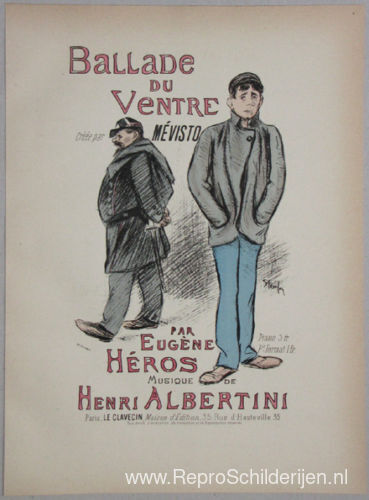 Wij bieden u een ambachtelijke reproductie op doek van het beroemde schilderij 'Ballade du Ventre' van Theophile Steinlen, afkomstig uit het Reproductiemuseum.