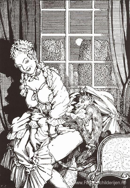 Wij bieden u een ambachtelijke reproductie op doek van het beroemde schilderij 'Boek van de markiezin. Illustratie 4' van Konstantin Somov, afkomstig uit het Reproductiemuseum.