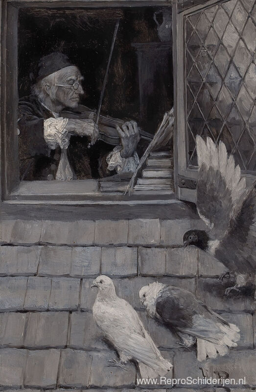 Wij bieden u een ambachtelijke reproductie op doek van het beroemde schilderij 'De oude viool ' van Howard Pyle, afkomstig uit het Reproductiemuseum.