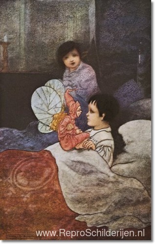 Wij bieden u een ambachtelijke reproductie op doek van het beroemde schilderij 'Hij sloeg zijn armen over elkaar en leunde naar voren totdat zij' van Charles Robinson, afkomstig uit het Reproductiemuseum.