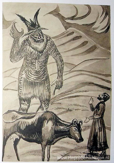Wij bieden u een ambachtelijke reproductie op doek van het beroemde schilderij 'Illustratie bij 'Armeense volksverhalen'' van Martiros Saryan, afkomstig uit het Reproductiemuseum.
