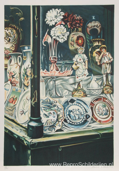 Wij bieden u een ambachtelijke reproductie op doek van het beroemde schilderij 'Antiekwinkel ' van Clarence Holbrook Carter, afkomstig uit het Reproductiemuseum.