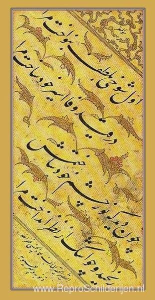 Wij bieden u een ambachtelijke reproductie op doek van het beroemde schilderij 'onbekende titel' van Mir Emad Hassani, afkomstig uit het Reproductiemuseum.