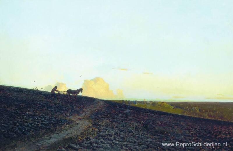 Wij bieden u een ambachtelijke reproductie op doek van het beroemde schilderij 'Avond in het veld' van Isaac Levitan, afkomstig uit het Reproductiemuseum.