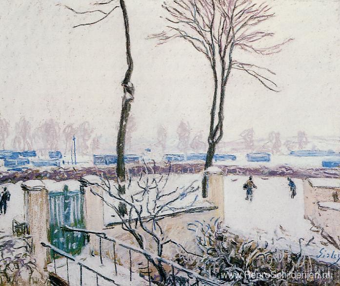 Wij bieden u een ambachtelijke reproductie op doek van het beroemde schilderij 'Benadering van het treinstation' van Alfred Sisley, afkomstig uit het Reproductiemuseum.