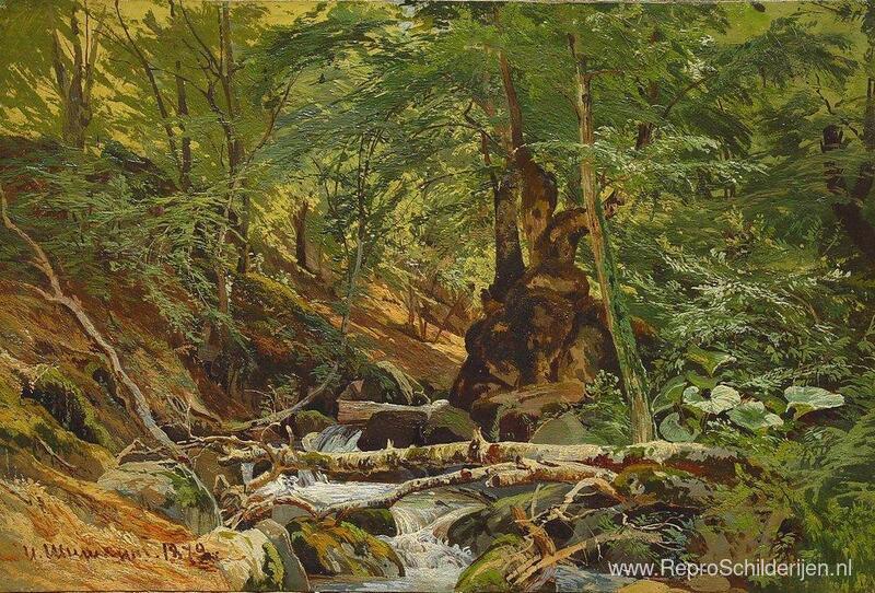 Wij bieden u een ambachtelijke reproductie op doek van het beroemde schilderij 'Boslandschap' van Ivan Shishkin, afkomstig uit het Reproductiemuseum.