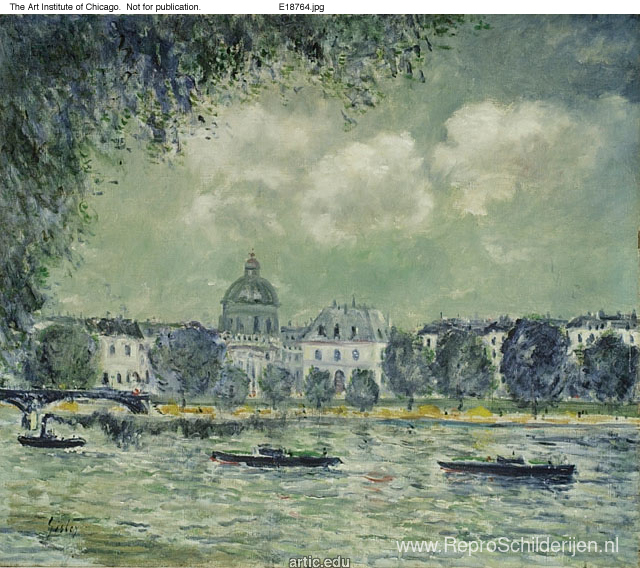 Wij bieden u een ambachtelijke reproductie op doek van het beroemde schilderij 'De Seine met het Instituut van Frankrijk' van Alfred Sisley, afkomstig uit het Reproductiemuseum.