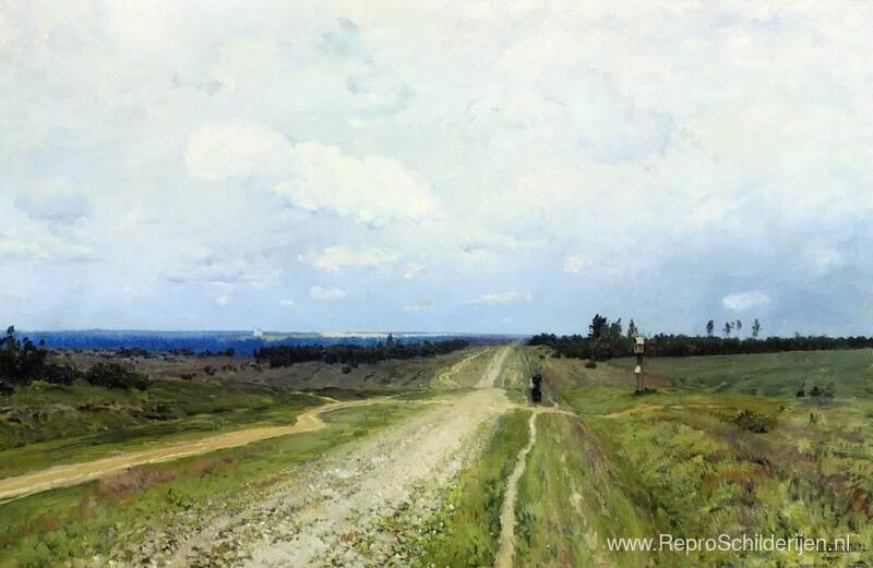 Wij bieden u een ambachtelijke reproductie op doek van het beroemde schilderij 'De weg van Vladimir' van Isaac Levitan, afkomstig uit het Reproductiemuseum.