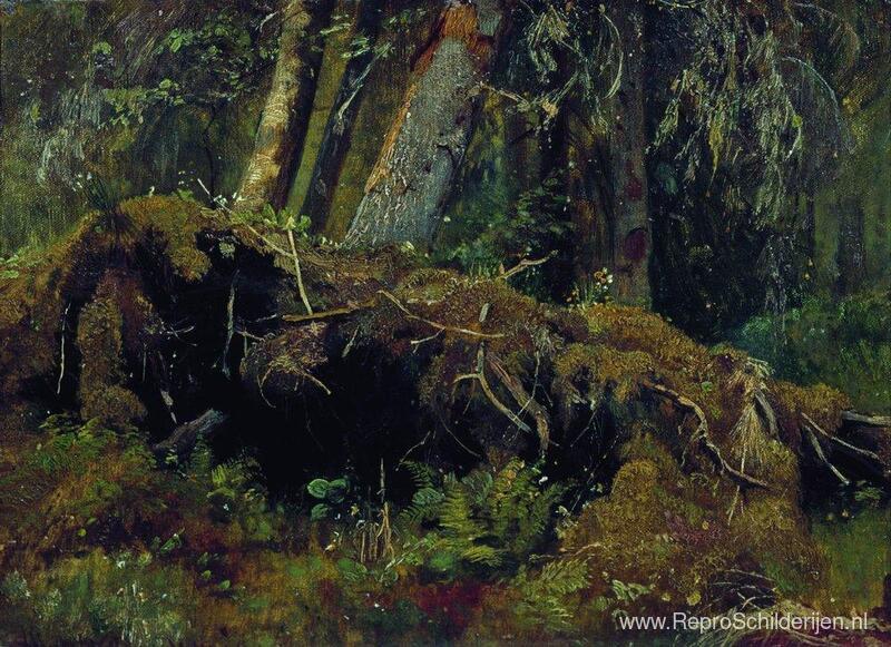 Wij bieden u een ambachtelijke reproductie op doek van het beroemde schilderij 'Door de wind omgevallen bomen' van Ivan Shishkin, afkomstig uit het Reproductiemuseum.