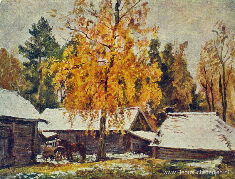 Wij bieden u een ambachtelijke reproductie op doek van het beroemde schilderij 'Eerste sneeuw' van Pyotr Konchalovsky, afkomstig uit het Reproductiemuseum.