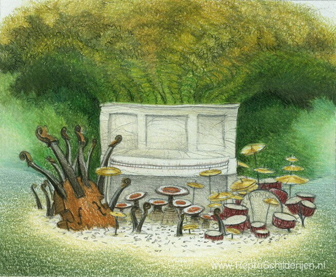 Wij bieden u een ambachtelijke reproductie op doek van het beroemde schilderij 'Erroll's vakantie' van Jacek Yerka, afkomstig uit het Reproductiemuseum.