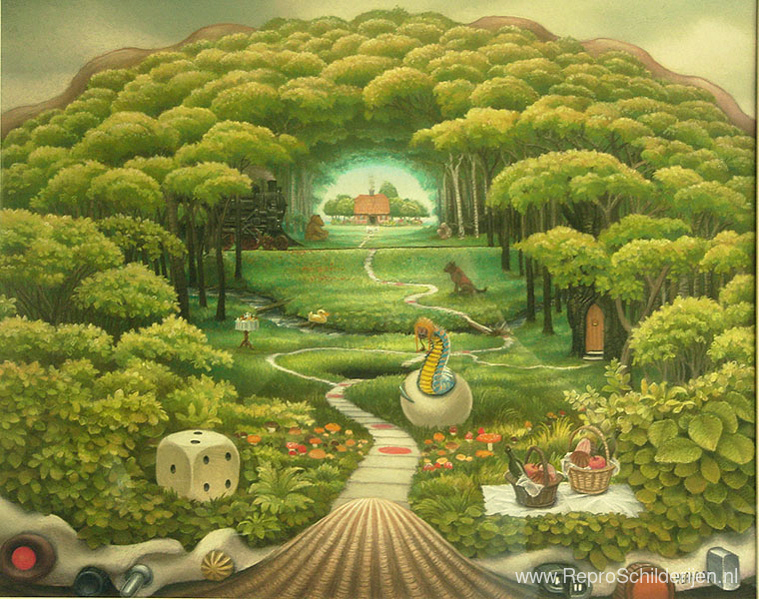 Wij bieden u een ambachtelijke reproductie op doek van het beroemde schilderij 'Gameboy' van Jacek Yerka, afkomstig uit het Reproductiemuseum.