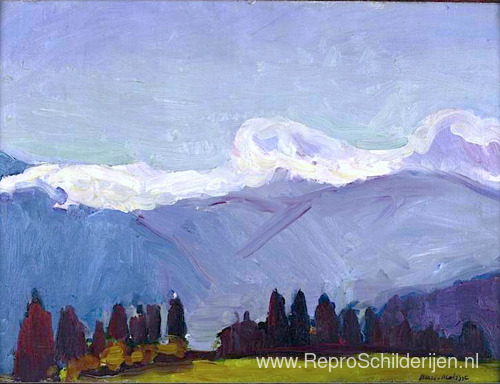 Wij bieden u een ambachtelijke reproductie op doek van het beroemde schilderij 'Groene naalden op het Kruis Javernaz' van Henri Matisse, afkomstig uit het Reproductiemuseum.