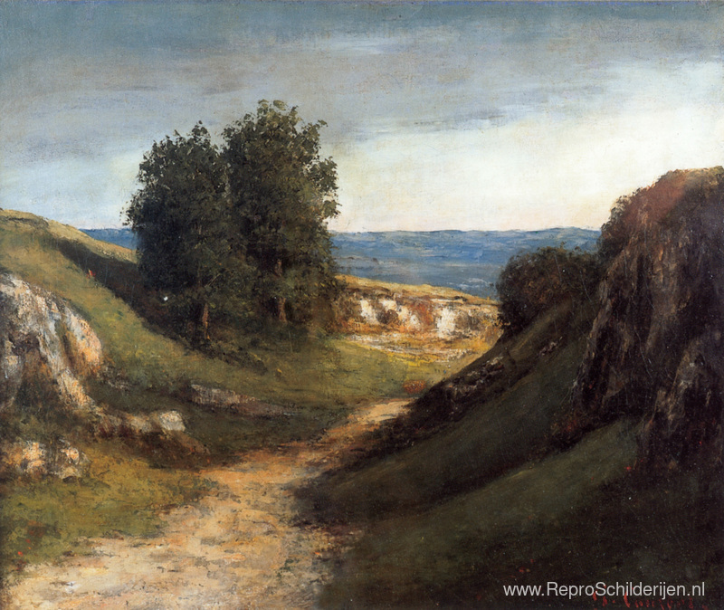 Wij bieden u een ambachtelijke reproductie op doek van het beroemde schilderij 'Guyere-landschap' van Gustave Courbet, afkomstig uit het Reproductiemuseum.
