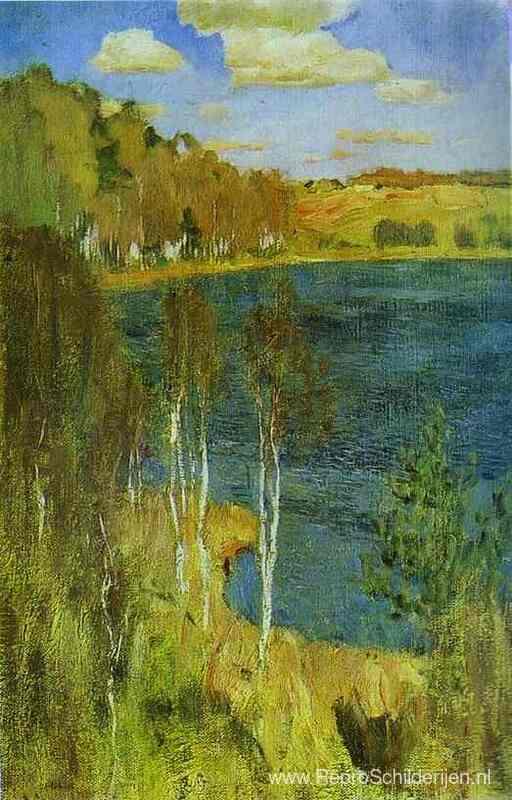 Wij bieden u een ambachtelijke reproductie op doek van het beroemde schilderij 'Het meer' van Isaac Levitan, afkomstig uit het Reproductiemuseum.
