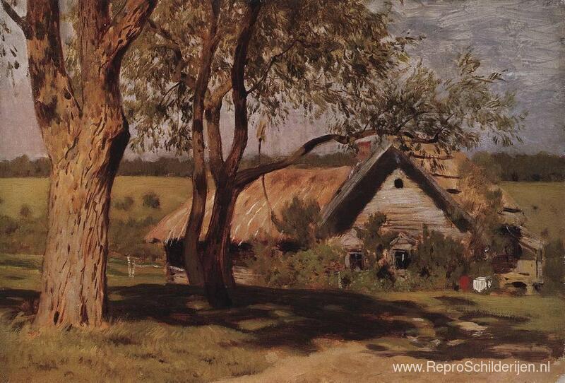 Wij bieden u een ambachtelijke reproductie op doek van het beroemde schilderij 'Huis met bezembomen.' van Isaac Levitan, afkomstig uit het Reproductiemuseum.