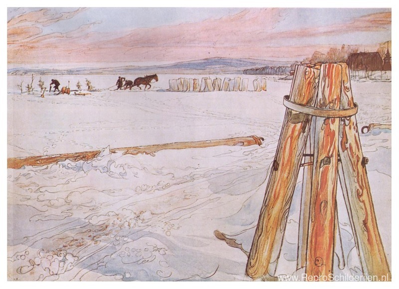 Wij bieden u een ambachtelijke reproductie op doek van het beroemde schilderij 'IJs oogsten' van Carl Larsson, afkomstig uit het Reproductiemuseum.