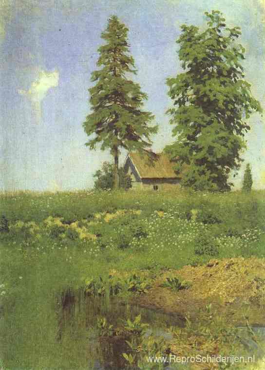 Wij bieden u een ambachtelijke reproductie op doek van het beroemde schilderij 'Kleine hut in een weide' van Isaac Levitan, afkomstig uit het Reproductiemuseum.