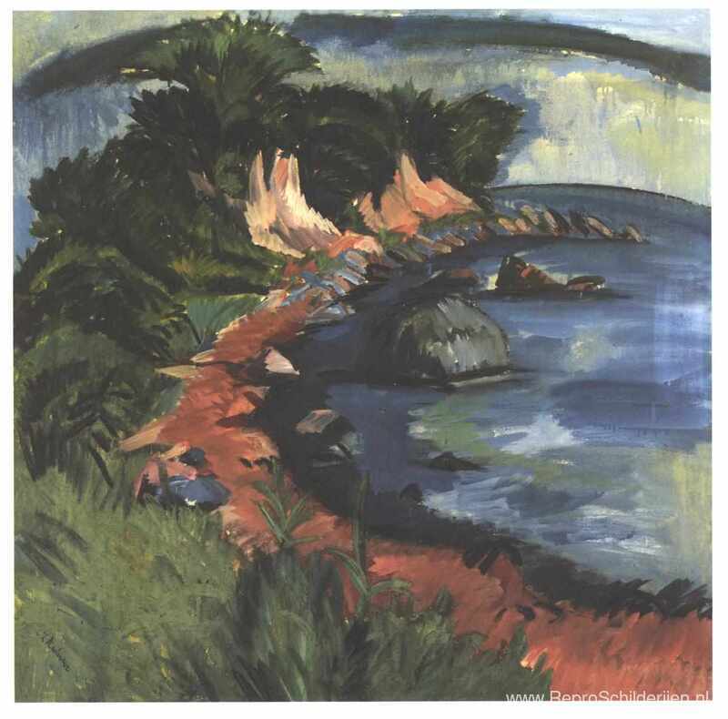 Wij bieden u een ambachtelijke reproductie op doek van het beroemde schilderij 'Kust van Fehmarn' van Ernst Ludwig Kirchner, afkomstig uit het Reproductiemuseum.
