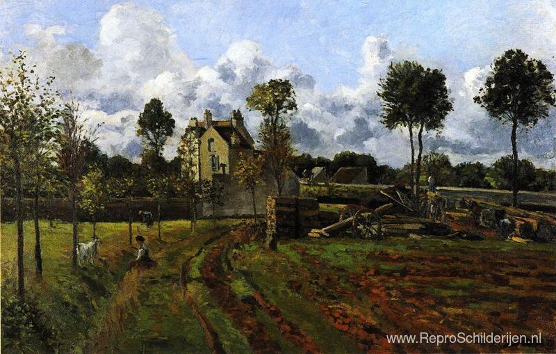 Wij bieden u een ambachtelijke reproductie op doek van het beroemde schilderij 'Landschap bij Pontoise' van Camille Pissarro, afkomstig uit het Reproductiemuseum.