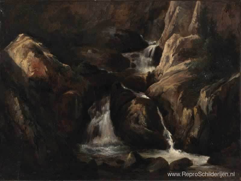 Wij bieden u een ambachtelijke reproductie op doek van het beroemde schilderij 'Landschap in de Auvergne' van Theodore Rousseau, afkomstig uit het Reproductiemuseum.