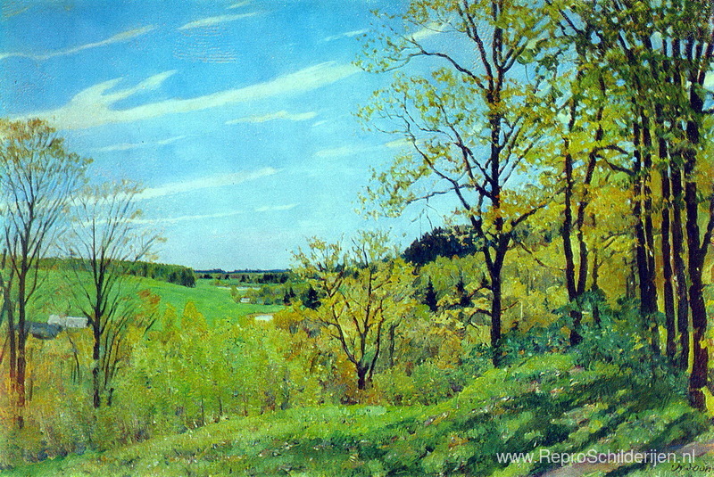 Wij bieden u een ambachtelijke reproductie op doek van het beroemde schilderij 'Mei ochtend. Nachtegaal plaats. Ligachevo' van Konstantin Yuon, afkomstig uit het Reproductiemuseum.