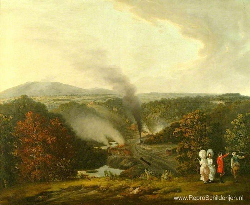 Wij bieden u een ambachtelijke reproductie op doek van het beroemde schilderij 'Middag Uitzicht op Coalbrookdale, Shropshire ' van William Williams, afkomstig uit het Reproductiemuseum.