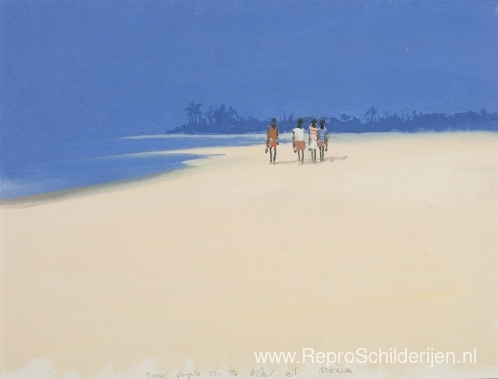 Wij bieden u een ambachtelijke reproductie op doek van het beroemde schilderij 'Morjim-strand, Goa' van John Miller, afkomstig uit het Reproductiemuseum.