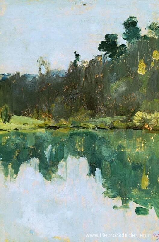 Wij bieden u een ambachtelijke reproductie op doek van het beroemde schilderij 'Oever van het meer' van Isaac Levitan, afkomstig uit het Reproductiemuseum.