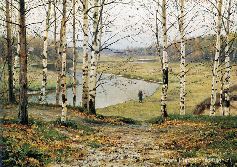 Wij bieden u een ambachtelijke reproductie op doek van het beroemde schilderij 'oktober' van Efim Volkov, afkomstig uit het Reproductiemuseum.