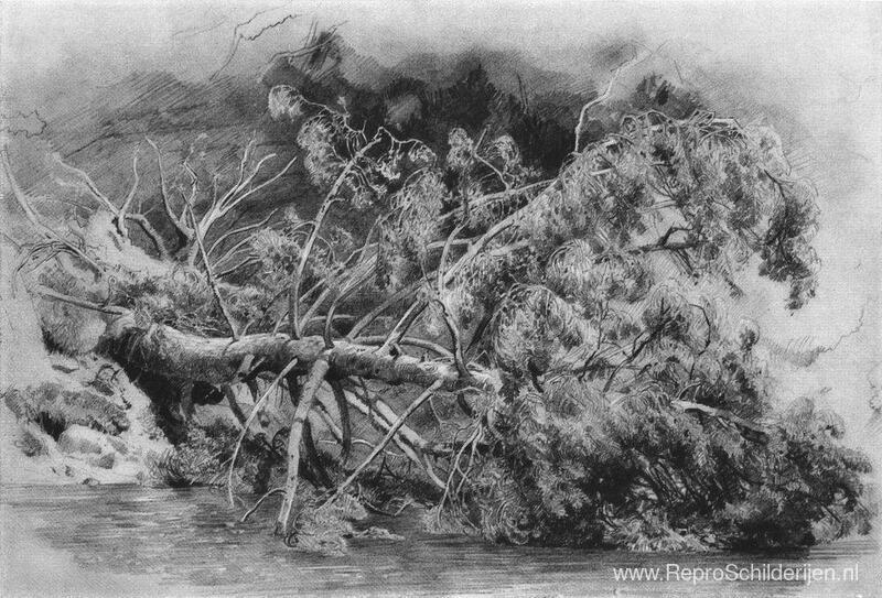 Wij bieden u een ambachtelijke reproductie op doek van het beroemde schilderij 'Omgevallen boom. Siverskaja' van Ivan Shishkin, afkomstig uit het Reproductiemuseum.