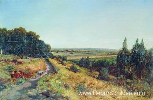 Wij bieden u een ambachtelijke reproductie op doek van het beroemde schilderij 'Radishchevskaya landgoed van Bogolyubov (hoeve Ablyazov)' van Alexey Bogolyubov, afkomstig uit het Reproductiemuseum.