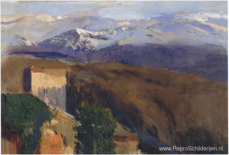 Wij bieden u een ambachtelijke reproductie op doek van het beroemde schilderij 'Sierra Nevada, Grenada' van Joaquín Sorolla, afkomstig uit het Reproductiemuseum.
