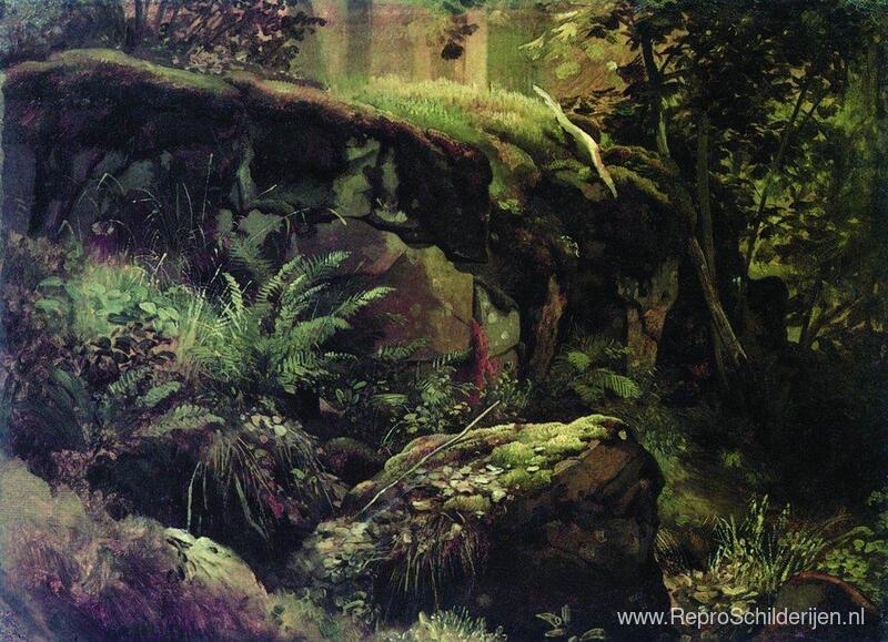 Wij bieden u een ambachtelijke reproductie op doek van het beroemde schilderij 'Stenen in het bos. Valaam' van Ivan Shishkin, afkomstig uit het Reproductiemuseum.