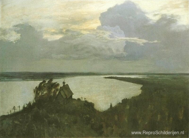 Wij bieden u een ambachtelijke reproductie op doek van het beroemde schilderij 'Studie naar "Boven de eeuwige rust"' van Isaac Levitan, afkomstig uit het Reproductiemuseum.